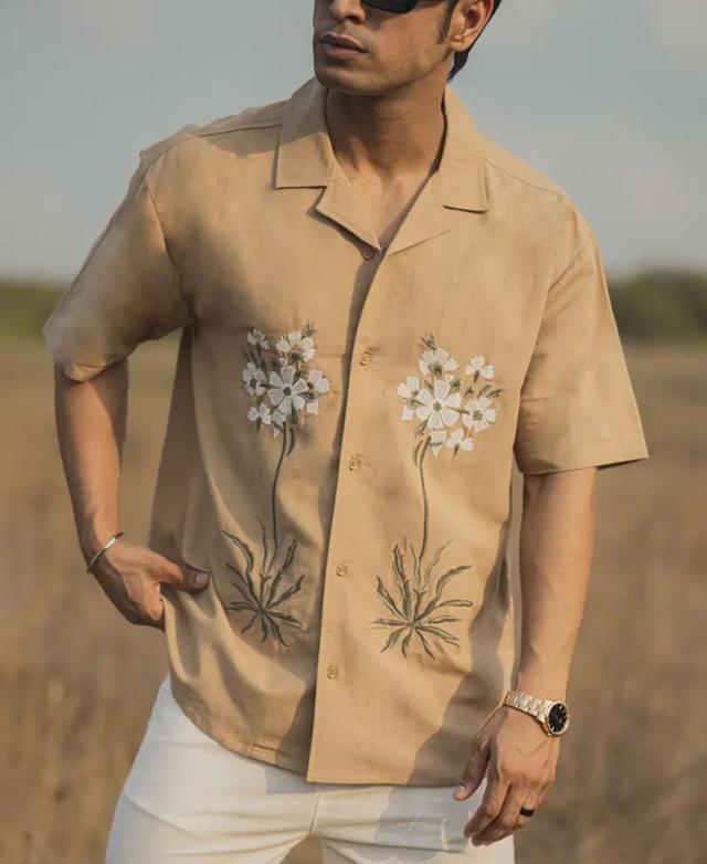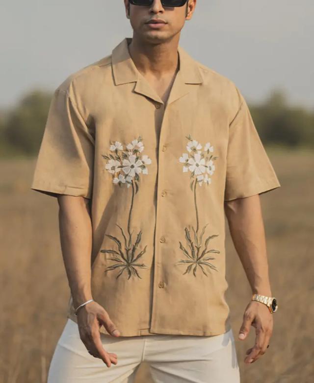 - Pair this Beige Structured Embroidery Oversized Half Sleeve Shirt with your favorite jeans, shorts, or chinos for a versatile and trendy look. Whether you’re heading to a casual gathering, a day out with friends, or a relaxed evening event, this shirt will keep you looking effortlessly stylish.