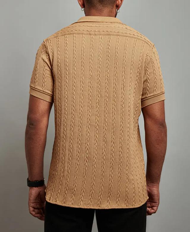 - Structured Design: The structured pattern in a versatile camel hue enhances the t-shirt’s aesthetic appeal, giving it a modern and polished look.