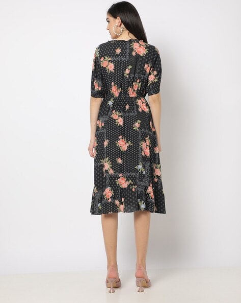 SKU: Floral Print Round Neck Fit & Flare Dress