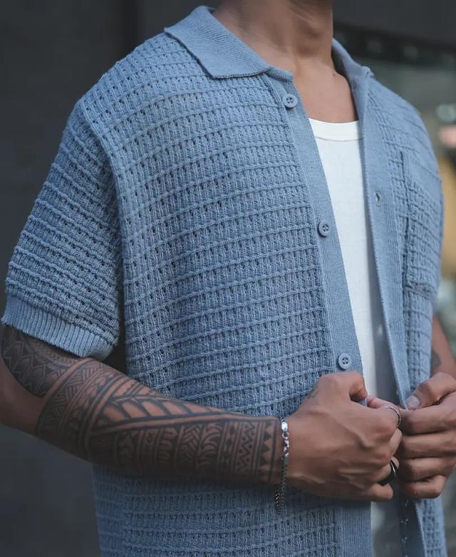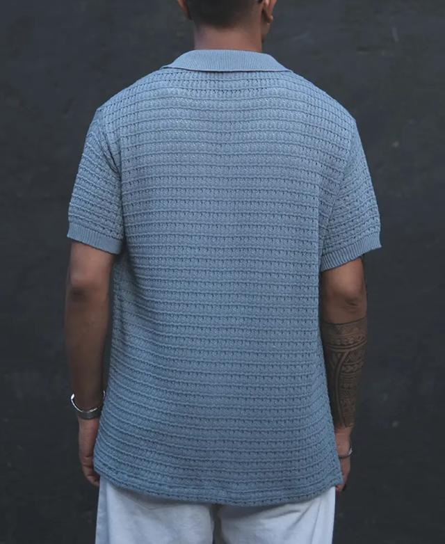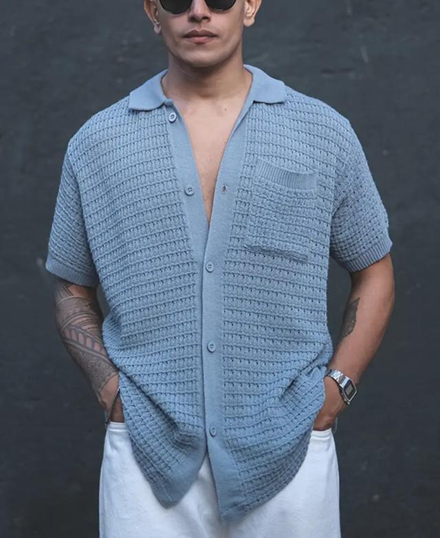 Grey Structured Flat Knit Half Sleeves Shirt