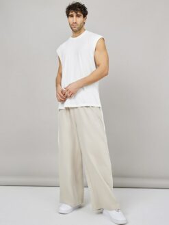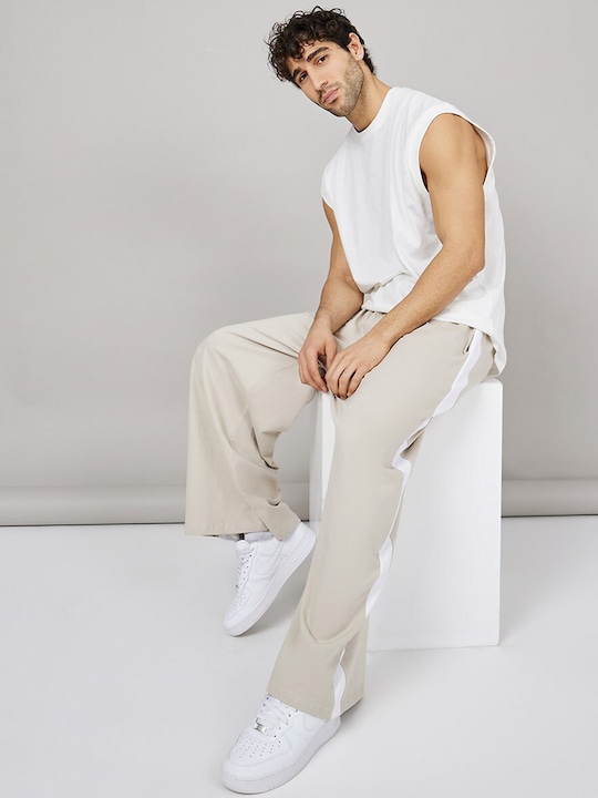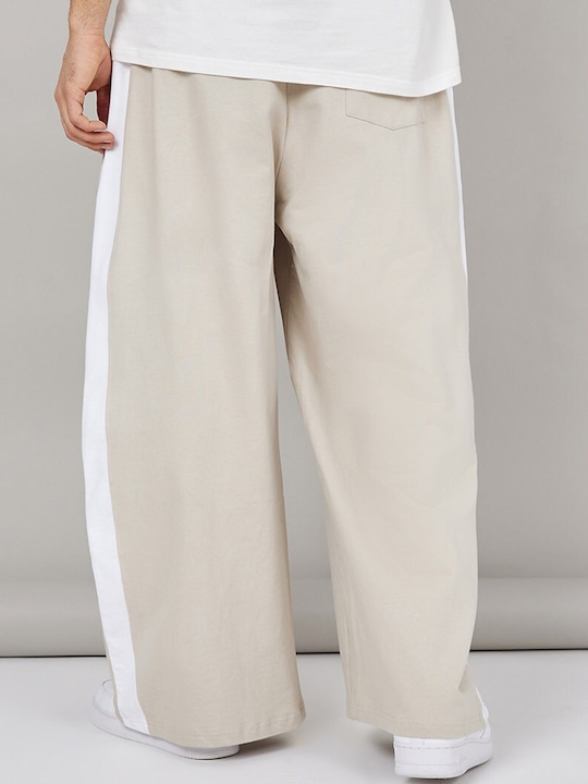 - Revamp your athleisure collection with the Men Extra Wide Leg Joggers featuring Contrast Stripe Detail. These joggers offer a modern twist with their extra-wide leg design and striking contrast stripe detail, perfect for adding a stylish edge to your casual ensemble.