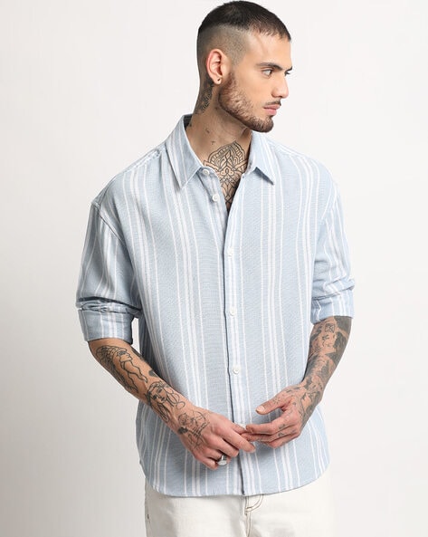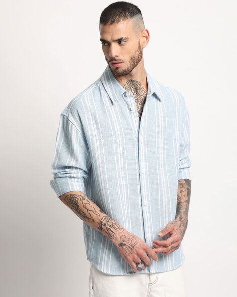 Men Striped Relaxed Fit Shirt – Blue