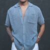 Multicolor Crochet Knit Oversized Half Sleeves Shirt