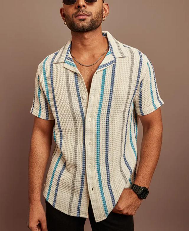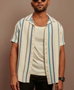 Multicolor Structured Striped Half Sleeves Shirt