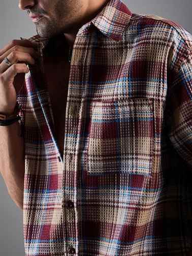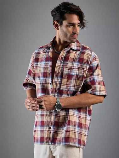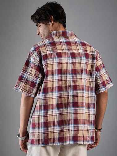 Oversized Tartan Checked Spread Collar Casual Shirt