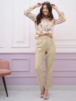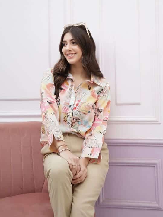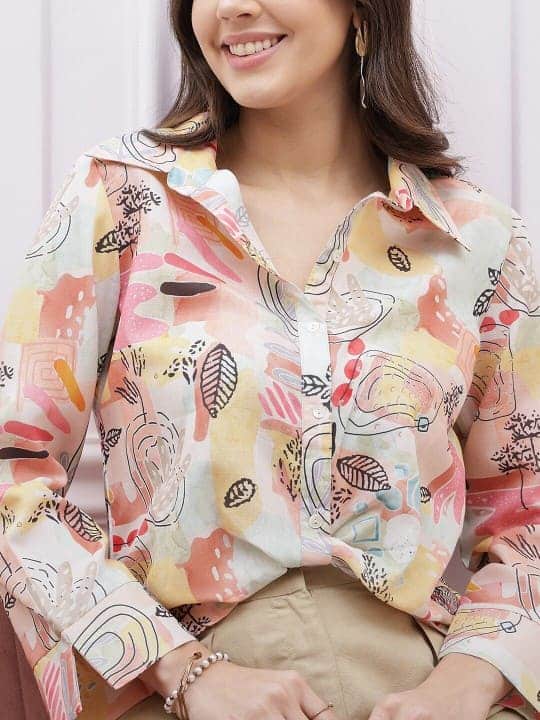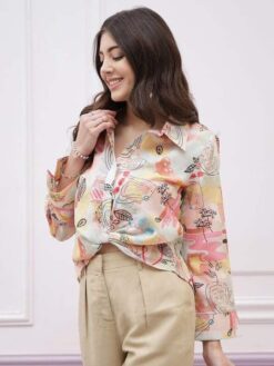 SKU: Printed Long Sleeves Twisted Shirt-Style Top