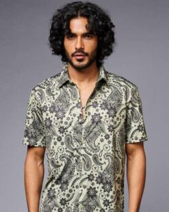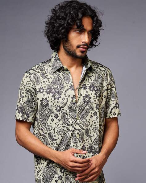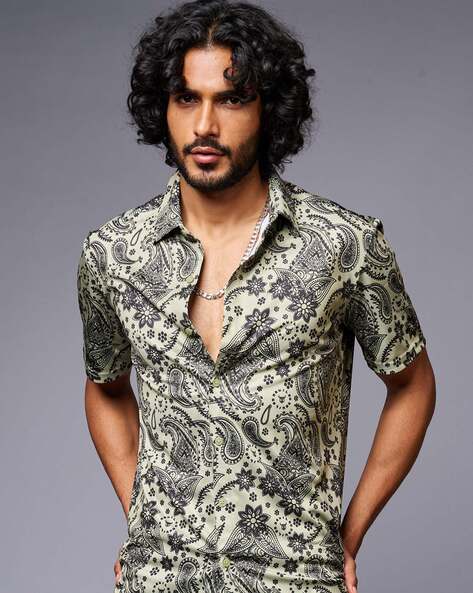 - Introducing the Go Devil Self-Design Regular Fit Shirt in a striking green hue, exclusively at Nova Fashion.