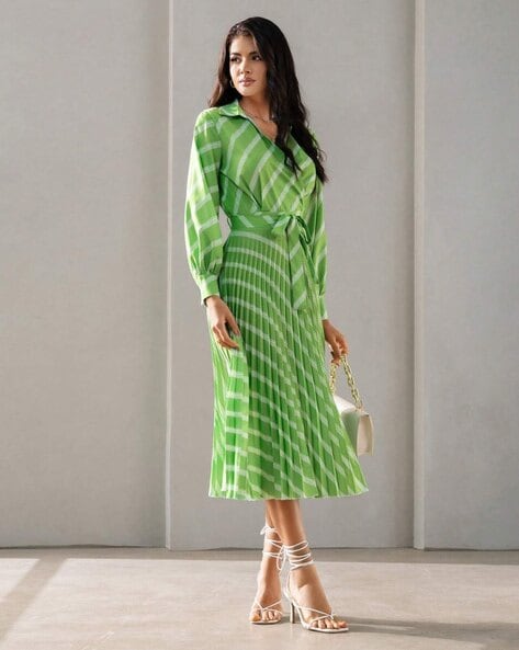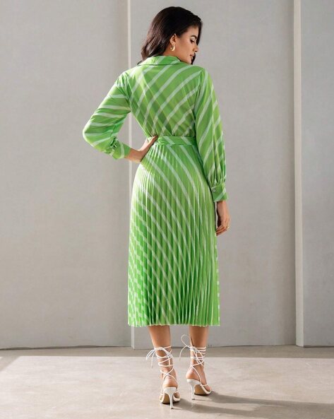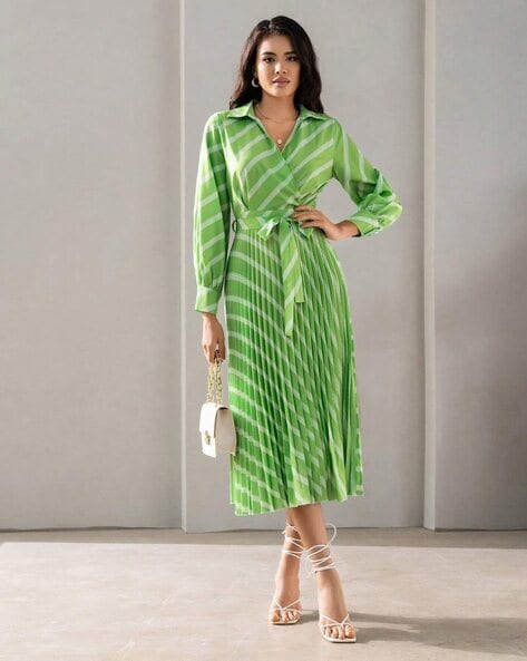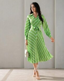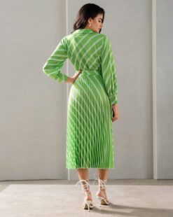 - Stylish Striped Design: The dress boasts a trendy green hue with contrasting white stripes, creating a vibrant and eye-catching look that exudes sophistication.