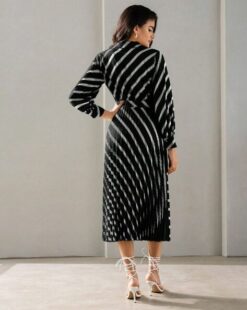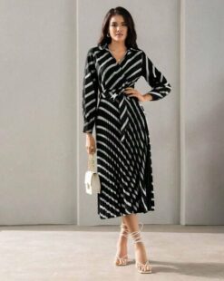 - Timeless Striped Design: The dress is adorned with classic black and white stripes, offering a chic and sophisticated look that never goes out of style.
