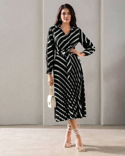 - Elevate your wardrobe with Nova Fashion’s Wedani Stripes A-Line Dress, the perfect choice for timeless elegance and effortless style.
