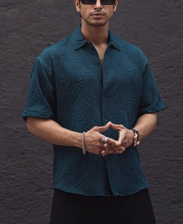 - Step up your casual style with the Teal Blue Structured Oversized Half Sleeves Shirt from Powerlook. This shirt features a bold teal blue color and an oversized fit, offering a perfect blend of comfort and contemporary fashion for any relaxed setting.