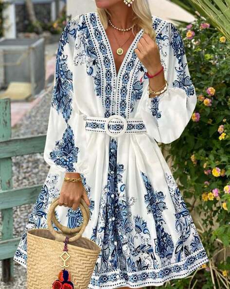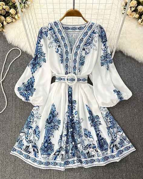 - Introducing Nova Fashion’s Yuniqee Women Floral Print A-Line Dress with Belt, where timeless elegance meets modern charm. This beautiful white A-line dress, adorned with a delicate floral print and complemented by a matching belt, is an ideal choice for any casual or semi-formal occasion.