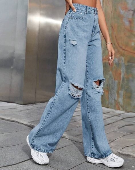 - Ripped Design: Embrace urban edge with the ripped detailing of these blue jeans, adding a rebellious and contemporary touch to your outfit for an effortlessly cool look.