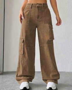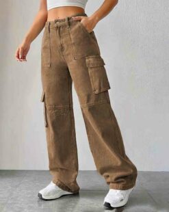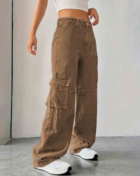 - Introducing Nova Fashion’s Black Scissor Women Wide Jeans with Cargo Pockets, where style meets utility effortlessly. Crafted from 100% cotton, these jeans feature a wide-leg silhouette and cargo pockets in a rich brown hue, ensuring a chic and functional ensemble.