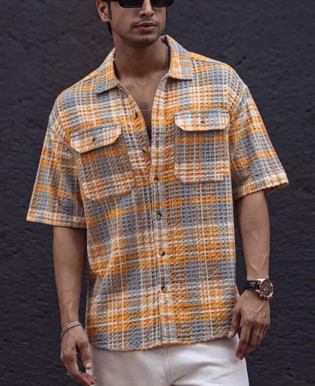 - Carefully crafted to offer both comfort and style, our Yellow and Grey Structured Checks Oversized Half Sleeves Shirt is a must-have addition to your casual wardrobe, ensuring you stay on-trend and comfortable in every setting.