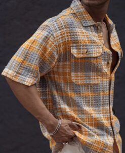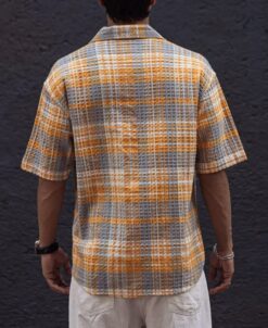 - Pair this Yellow and Grey Structured Checks Oversized Half Sleeves Shirt with your favorite jeans, shorts, or chinos for a versatile and fashionable ensemble. Whether you’re heading to a casual gathering, a day out with friends, or a relaxed evening event, this shirt will keep you looking effortlessly stylish.